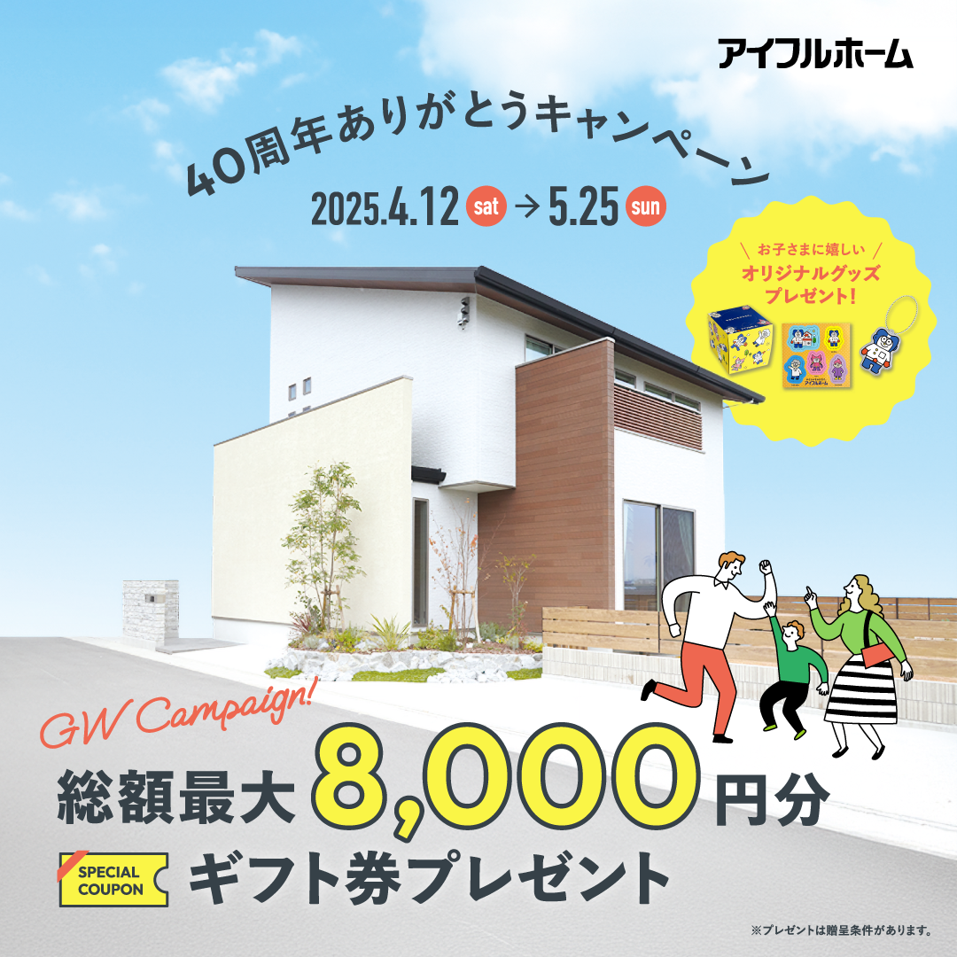 ※複数店舗へご来場いただいた場合でも、ご来場プレゼントは1回限り※他イベント及びキャンペーンの来場特典との併用は不可となります。※その他、不正行為と弊社がみなした場合、プレゼント提供をお断りする場合がございます。※他人への譲渡およびネット転売等の行為はおやめください。※モデルハウスのアンケートでご記入いただいたお名前でご応募ください。※ご来場の店舗の管理表とご応募時のシリアルナンバーが一致しない場合、プレゼントのご提供をお断りする場合がございます。