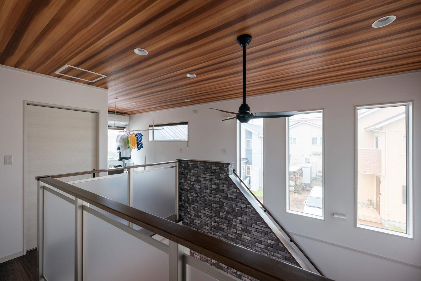 竣工後、奥さまの妊娠が分かり、5人家族となりました。スキップフロアは現在、赤ちゃんのお昼寝スペースです。吹き抜けのおかげで、広がりのある間取りになっただけでなく、1階と2階で空気の循環がスムーズにでき、家中どこでも快適な温度が保たれています。