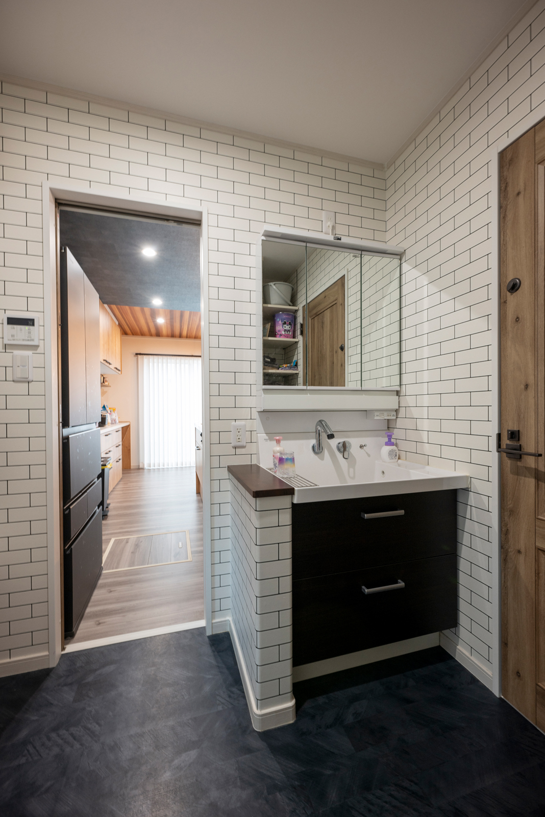 同級生で話しやすかったという以上に「一緒に考えてくれたので頼んでよかったと感じました」とOさん。洗濯物を室内に干したい、収納の扉は木目にしたい、料理はガスでしたいなどの希望を伝え、図面が提案されました。1階は広い玄関と回遊できるキッチン、お風呂場、LDK、それに和室。2階はサンルームと主寝室、子ども部屋が2つ。間取りにこだわりはなく、決定間近まで提案の図面で進めていました。ところが、ある日Instagramで見たスキップフロアに奥さまが一目ぼれ。迷惑をかけたくないと考えつつ、「一生に一度の家づくりだから」と希望を伝えます。すると、意外にもあっさりと受け入れ、和室をスキップフロアに。「このままだと天井が低くなってしまうから吹き抜けにしましょう」と提案までしてくれました。