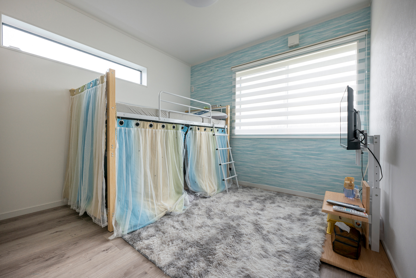 約5帖の子ども部屋。家族の時間を大切にしたいご夫妻の希望により、シンプルなデザインにした