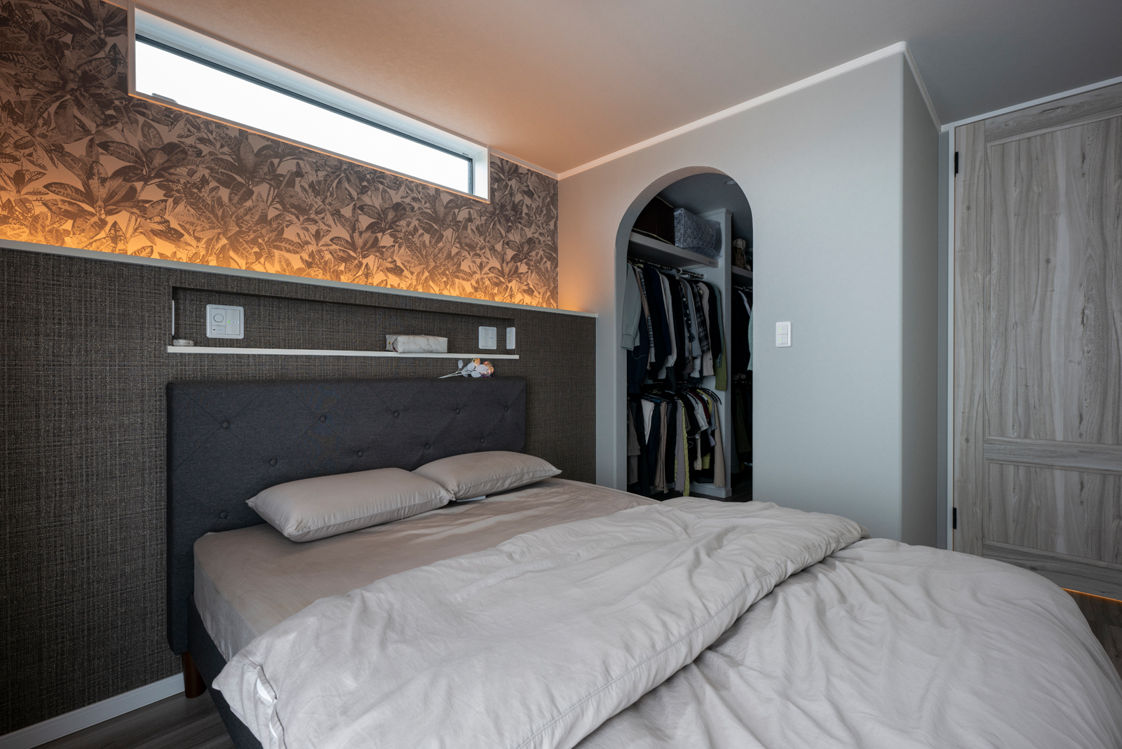 Kさま邸のコンセプトは「まるみ」。インテリアだけでなくLDKに特注の丸い窓を配置したり、ニッチの角や下がり壁を丸く仕上げたりしています。お子さんに優しい家づくりを心掛ける当社では、ケガ防止のため基本仕様として壁や柱のヘリを丸くしていますが、Kさま邸では機能をデザインとしてもご活用いただきました。2階は子ども部屋のみとし、お子さんが独立した後、当初の希望だった平屋ライクな暮らしができるよう主寝室を1階に設計する工夫もされています。ご夫妻のアイデアを実現するために、知識や技術の面でお手伝いさせていただきました。