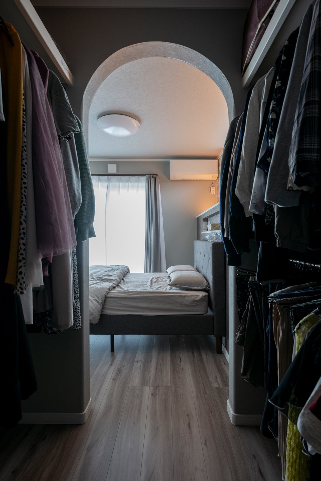 約4帖のウォークインクローゼットはLDKからもアクセス可能。LDK、主寝室、ウォークインクローゼットで回遊できるため、衣類の出し入れが便利