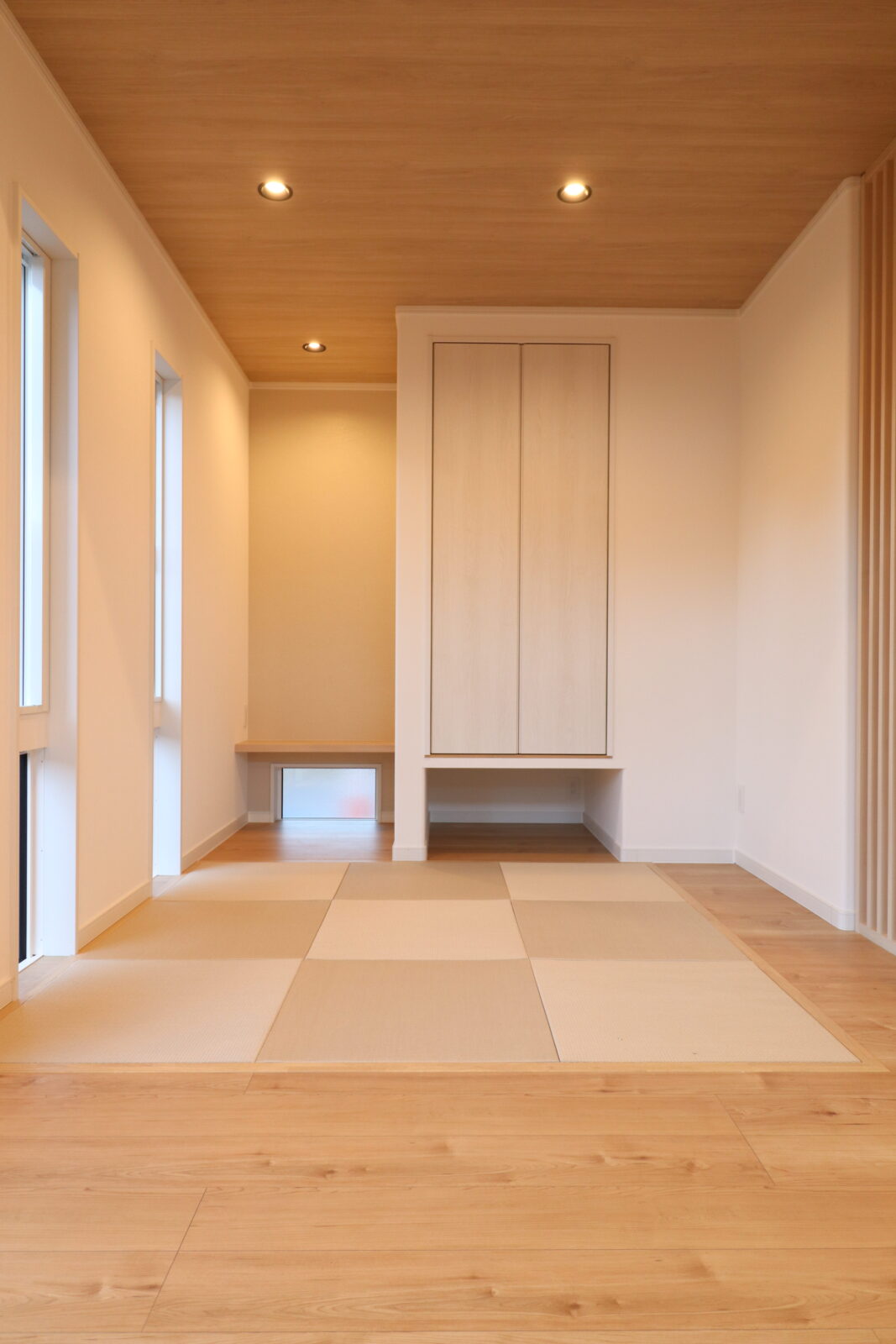 リビングは17.5帖とゆったりと広く、リビングのすぐ横にタタミスペースを設けました。